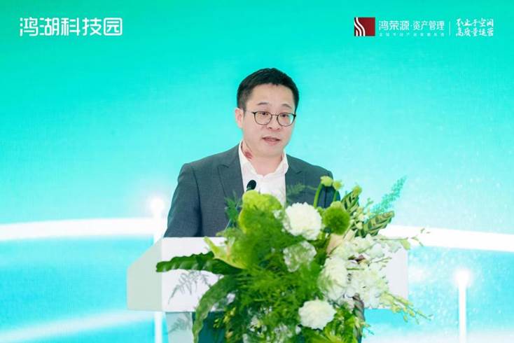 鸿荣源资管公司总经理周亮在致辞中强调:"龙华已走在数字产业的前列,成为粤港澳大湾区产业的核心引擎。鸿湖科技园作为区域产业升级的重要载体,将联动各界资源,搭建产学研合作平台,赋能企业升级,全力打造湾区产融创新标杆。"