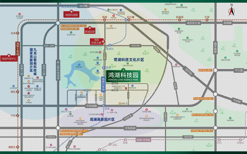 园区紧邻龙山智能科技城、观澜国家高新园,站位未来龙华北中心的鹭湖中心城,而鹭湖中心城将突出“行政+科技+文化+生活”的综合服务效能,是龙华面向未来、引领新质生产力发展的新一代中心区。在片区确定性的战略、规划及政策的加持下,鸿湖科技园得以拥有“起步即加速,首发即领先”得天独厚的发展态势。