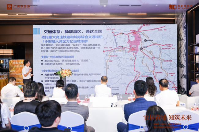 广州市住房政策研究中心副主任高金华,广州开发区房地产管理所副所长张梓林,知识城集团副总经理兼知识城城发集团董事长熊爱东,广州市房协党支部书记、副会长兼秘书长李静,以及行业专家、媒体代表共逾60人出席活动,聚焦区域"好房子"特色化建设,共同探讨黄埔区如何打造更加安全可靠、舒适便捷、绿色低碳、智慧互联的理想居所。