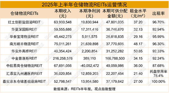 从经营成果来看,多数仓储物流REITs在收入及利润指标上表现积极。中金普洛斯REIT收入规模突出,2025年上半年报告期内实现总收入约21,625.86万元。该REIT的收入表现与其资产运营策略相关,其持有的10个仓储物流园依据市场供需变化灵活调整租赁方案,期末整体平均签约出租率持续维持在90%以上,同比提升2.7个百分点。